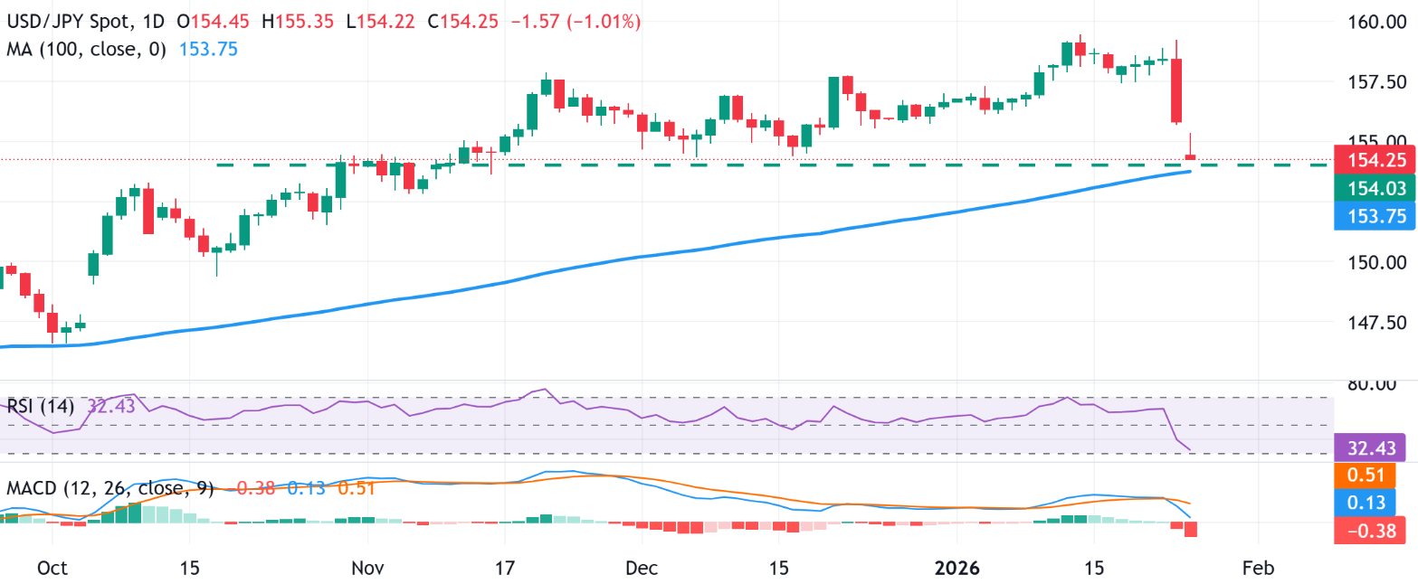 除此之外,日本银行(BoJ)的鹰派展望,以及持续的地缘政治不确定性,结果成为支撑日元避险地位的另一个因素。另一方面,美元则因所谓的“卖美国”贸易以及市场预期美国央行将在2026年再降息两次而徘徊在2025年9月以来的最低水平。BoJ与Fed的预期差异导致美元/日元对日内暴跌至154.00以下,并支持了进一步短期贬值的论点。