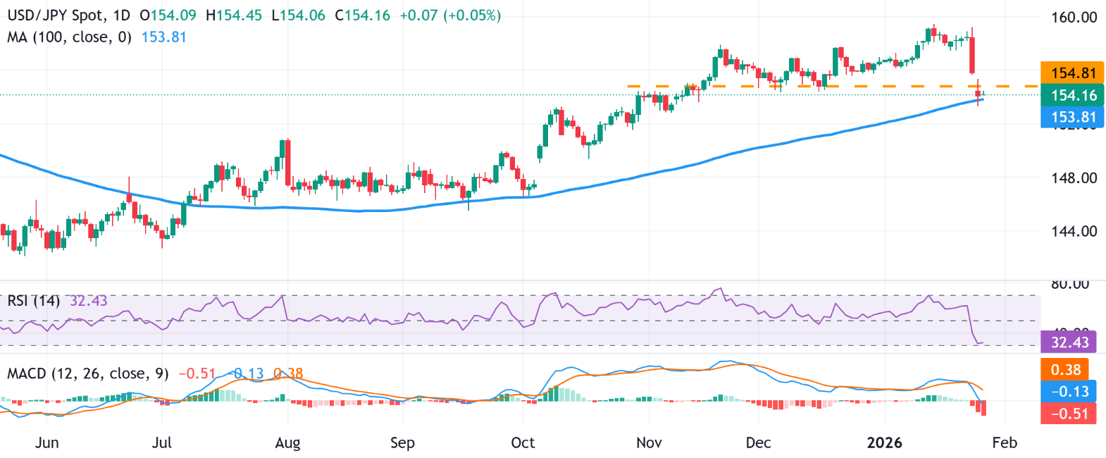 如果 daily 收盘价低于 100 日移动平均线 (SMA) 的 153.81,这将支持美元/日元 (USD/JPY) 在短期内的走势,交给空头更多的控制权;而持续在该 SMA 上方交易将使上涨趋势得以维持。MACD 指标柱状图趋于平缓并回归零线,表明动量有所稳定,RSI 恢复到 50 附近将改善市场情绪;相反,如果跌入 30 以下,可能会进一步走弱。