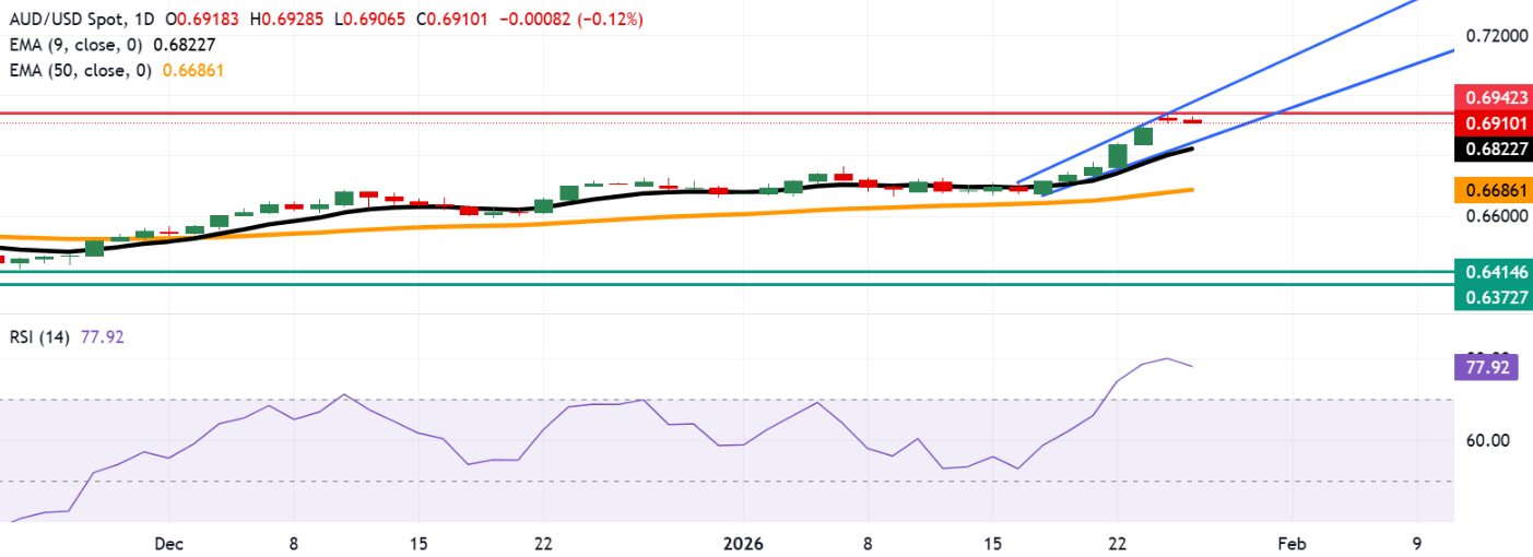 澳元/美元价格预测:由于超买状况,维持在0.6900附近的位置
