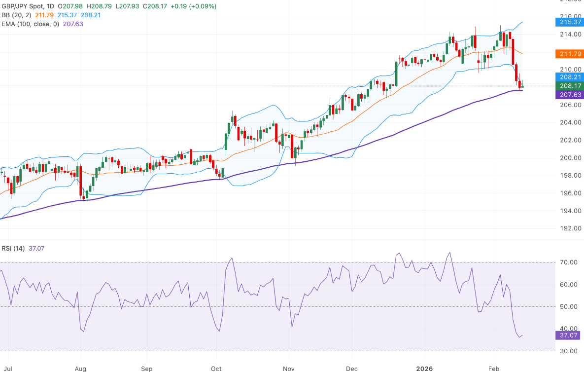 英镑/日元交叉盘在208.25附近保持积极立场,在周五的欧洲早盘结束了四连跌。然而,在希望日本首相高市圣子可能更具财政责任以及她的政策将提升经济的情况下,潜在的上行空间可能有限。