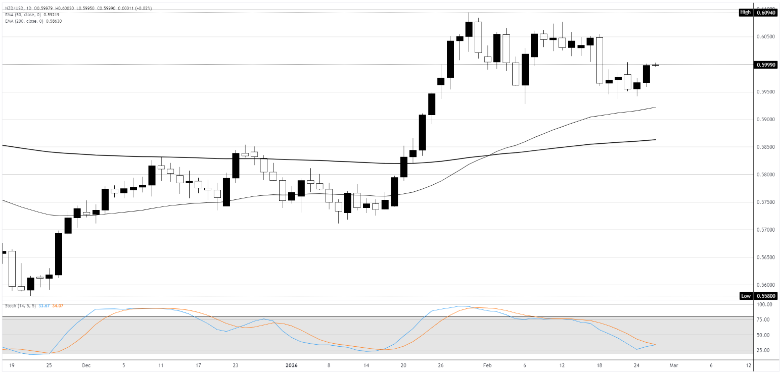 新西兰元正在回升至0.6000,因为美元因国情咨文后的贸易政策不确定性而走弱。