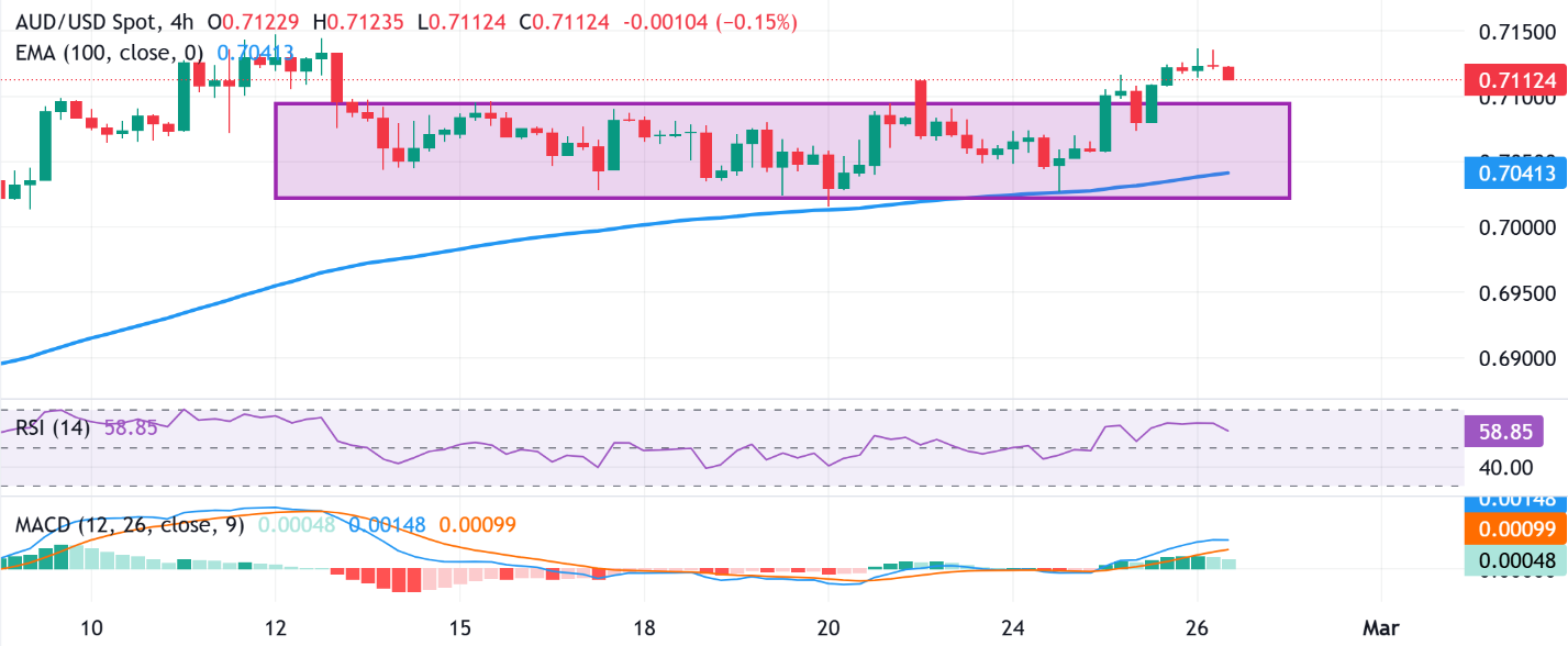 澳元/美元价格预测:在0.7100上方,多头占据主导地位;存在突破区间的情况