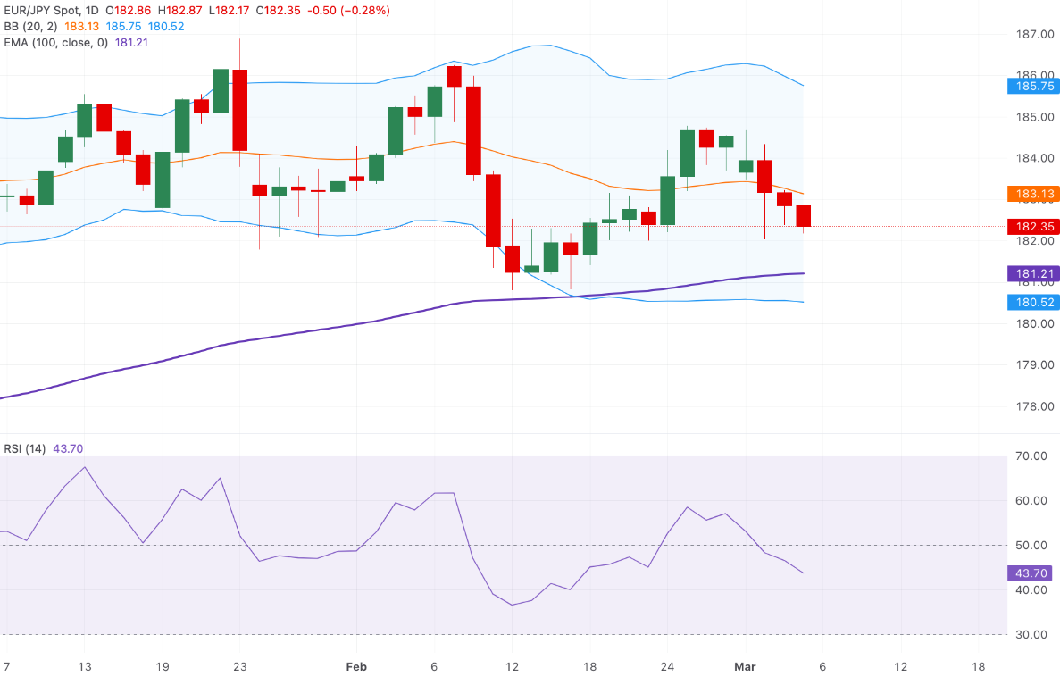 欧元/日元价格预测:低于182.50,保持在100日指数移动平均线以上看涨
