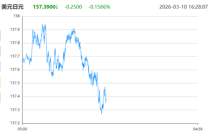 今日(2026年3月10日),美元兑日元维持震荡承压态势,截至早盘收盘,汇价交投于157.69附近,微涨0.0317%,日内最高触及157.95、最低下探157.51,延续近期震荡格局,受美元强势、中东地缘避险及日本央行政策预期共同主导,多空博弈较为温和。