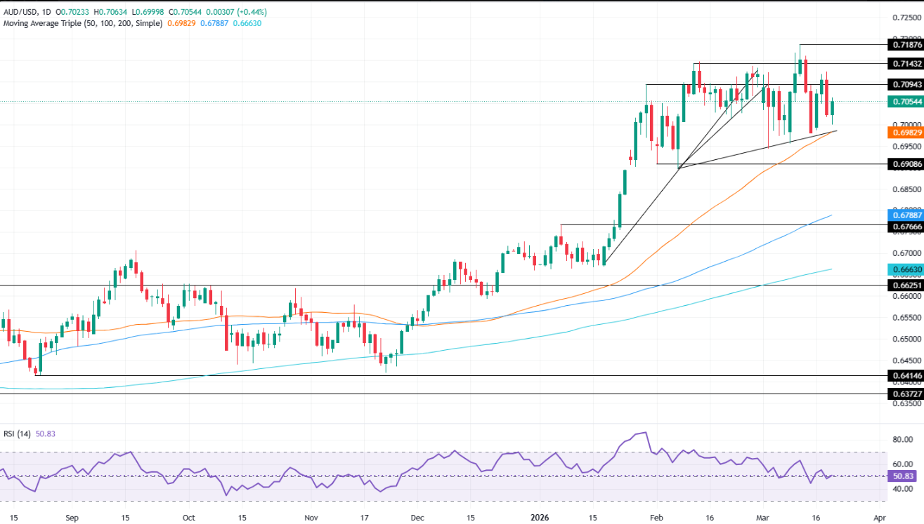 澳元/美元周四因美元(USD)走弱而上涨约0.47%,尽管交易员推迟了美联储(美联储)的降息,而美国原油价格下跌4.21%,这对美元构成阻力。该货币对目前交投于0.7050附近。