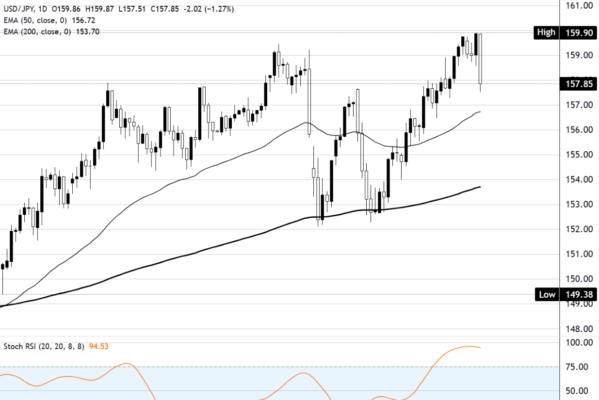 美元兑日元周四下跌1.25%,在日元全面走强主导的交易日中,汇价回落至158.00下方,收于157.80附近。该货币对本周早些时候曾上涨至160.00水平附近,随后大幅逆转,而周四的大阴线抹去了此前五个交易日的大部分涨幅。目前价格在152.00至160.00之间的宽幅区间内交易,该区间自1月下旬以来一直限制着价格走势。