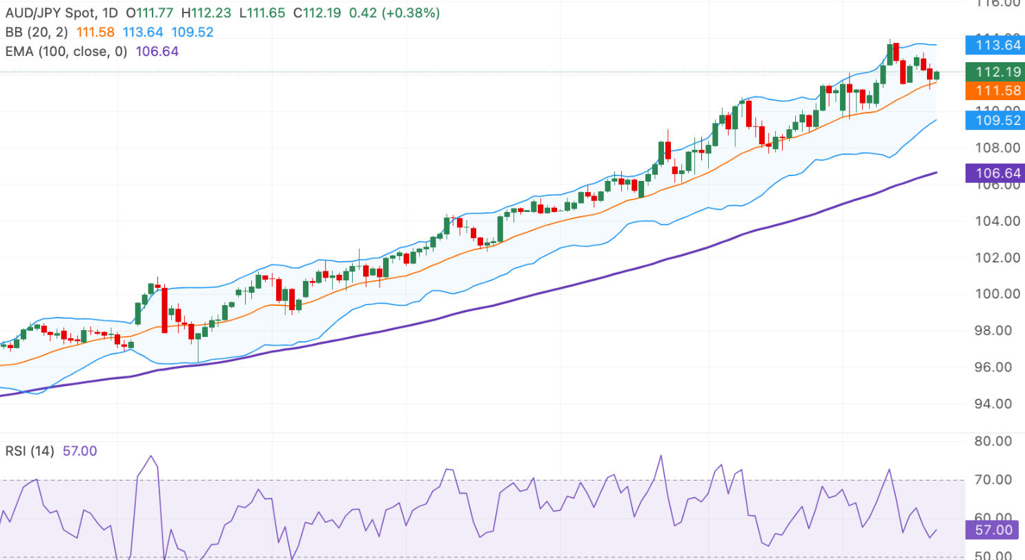 澳元/日元在周五早盘欧洲时段聚集力量,升至约112.20。