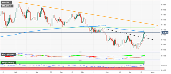 欧元/英镑价格分析:证明附近阻力位突破0.8700以下接近200均线是合理的