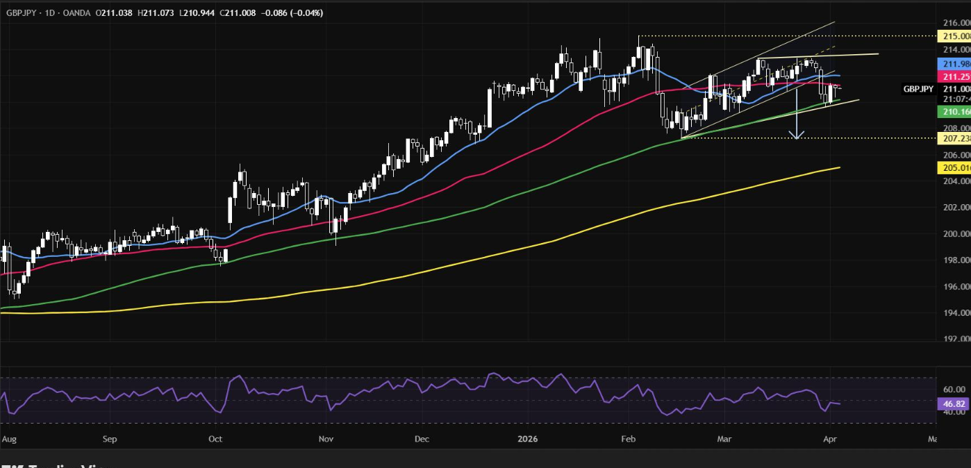 英镑/日元在211.00附近企稳,地缘政治紧张局势令市场情绪承压。
