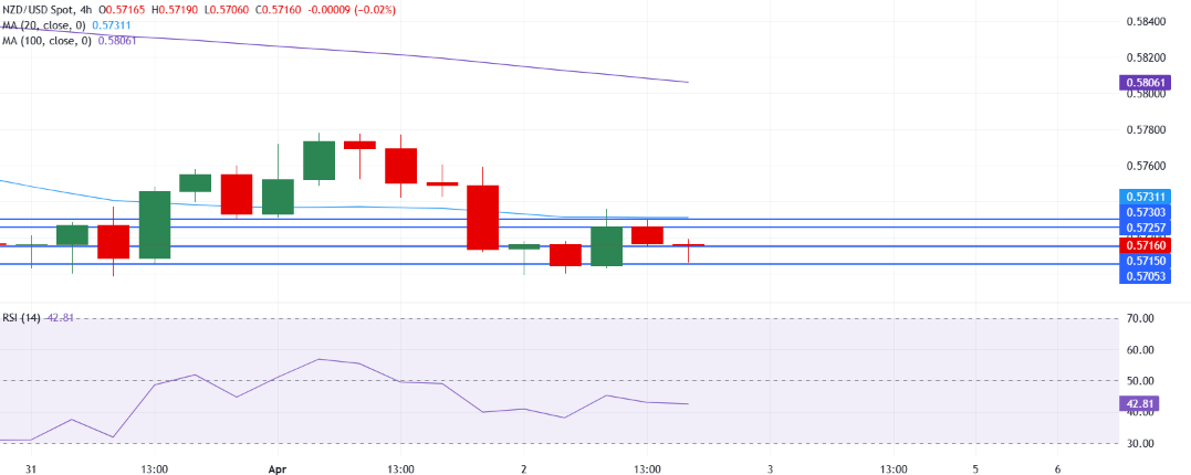 纽元兑美元在0.5700附近交易,因美元需求强劲而面临下行压力。