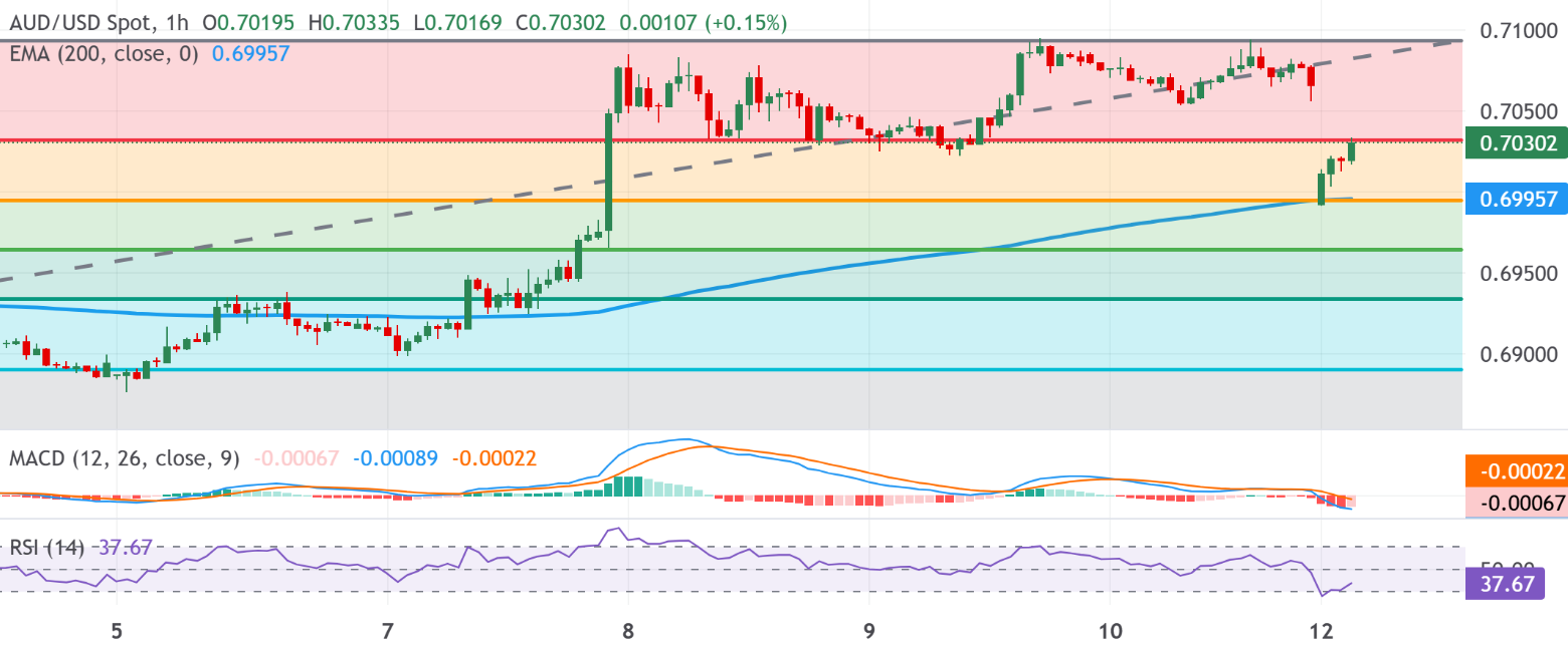 澳元/美元在0.7000下方展现出一定的韧性,并从汇合支撑位反弹。