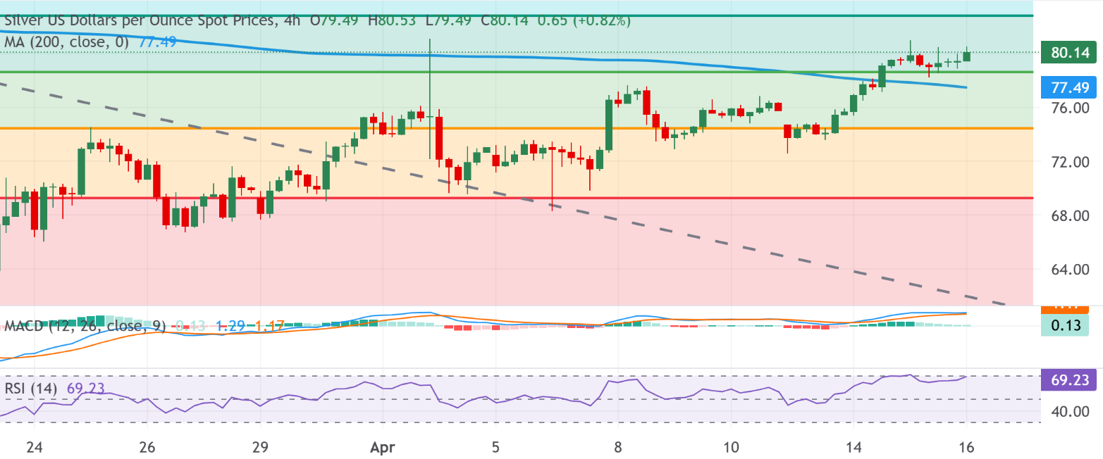 白银价格预测:白银/美元持稳于 80.00 美元上方,看涨格局下瞄准一个月高位
