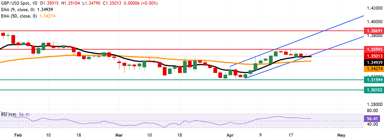 英镑/美元价格预测:跌破1.3500后测试九日EMA支撑