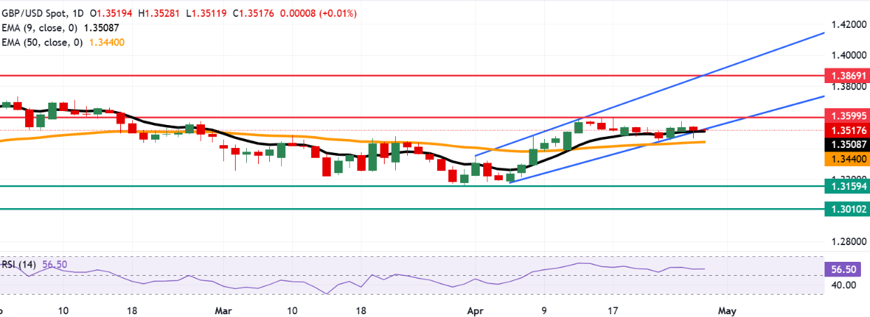 英镑/美元价格预测:在 1.3500 左右围绕九日 EMA 摇摆