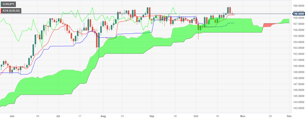 下行方面,支撑位为 Tenkan-Sen 水平 158.45,其次是 Kumo 顶部 157.90/80。