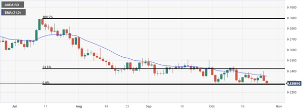 澳元(AUD)连续第二个交易日延续跌势,周四兑美元(USD)在年度低点附近交投。澳元/美元货币对面临乐观美元的挑战,这可能归因于美国国债收益率的改善。