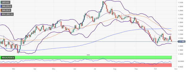 英镑/美元仍偏下行,一旦跌破10月19日低点1.2089,可能会加速下行趋势。突破后者将暴露 10 月低点 1.2037,然后该货币对将测试 3 月 15 日低点 1.2010。相反,如果主要货币保持在 1.2100 上方,则买家可能对重回 1.2200 抱有希望。
