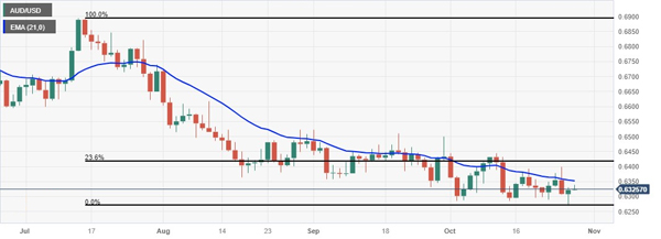 澳元(AUD)从年度低点反弹,周五连续第二天延续涨势。在美元 (USD) 修正以及澳大利亚储备银行 (RBA) 11 月 7 日再次加息的可能性的推动下,该货币对反弹。