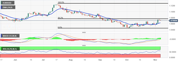 坚定突破后者可能会激发欧元/美元货币对的空头在1.0600中间和1.0631水平的14日指数移动平均线(EMA)附近的支撑区域中航行。