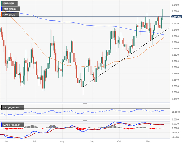 欧元/英镑触及六个月高位,但回落至 0.8750 附近的近期价格水平
