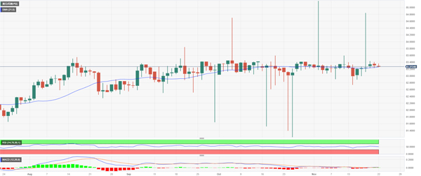 印度卢比当天交易走弱。自 9 月份以来,美元/印度卢比货币对一直在 82.80-83.35 的交易区间内交易。技术前景表明,美元/印度卢比的上行趋势保持不变,因为该货币对在日线图上保持在关键的 100 日指数移动平均线 (EMA) 上方。与此同时,14 天相对强弱指数 (RSI) 保持在 50.0 中线上方,表明阻力最小的路径是上行。
