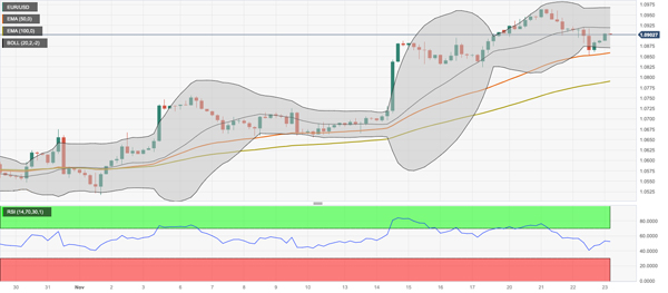 另一方面,布林带下限 1.0870 是主要货币对的初始支撑位。需要关注的额外下行过滤器位于 50 小时均线附近以及 11 月 22 日低点 1.0850-1.0860 区域。再往南,下一个竞争水平位于 100 小时均线 1.0790。突破后者将跌至 11 月 9 日的高点 1.0725。