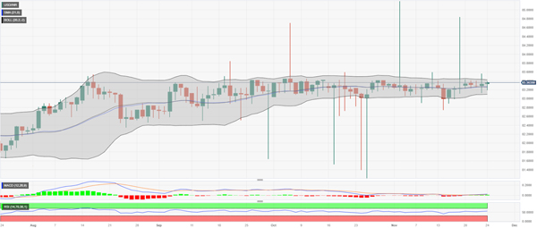 印度卢比当天交易走弱。美元/印度卢比汇率自 9 月份以来突破了 82.80-83.35 的交易区间。根据日线图,技术前景表明看涨倾向保持不变,因为该货币对保持在关键的 100 日指数移动平均线 (EMA) 上方并呈上升趋势。此外,14 天相对强弱指数 (RSI) 保持在 50.0 中线上方,反映出进一步上涨的前景看好。