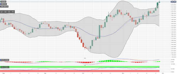 从技术角度来看,本周持续突破2,008-2,010美元关口以及随后的上涨支撑了进一步升值的前景。也就是说,日线图上的相对强弱指数 (RSI) 正出现轻微超买状况,因此看涨交易者需要谨慎行事。因此,谨慎的做法是等待近期盘整或小幅回调,然后再布局进一步上涨。