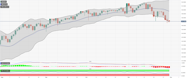 另一方面,美元 (USD) 则难以利用隔夜从 8 月 11 日以来最低水平的反弹,受到乐观的美国 GDP 报告的推动,该报告显示第三季度经济增长速度快于最初预期。投资者现在确信美国利率已见顶,并已消化了美联储最早将于 2024 年 3 月开始放松货币政策的可能性。美国国债收益率进一步下跌进一步强化了这一点,并继续下跌。美元/日元汇率持续下跌,接近周三触及的三个月低点。然而,看跌交易者不会在关键的美国通胀数据公布之前进行新的押注。