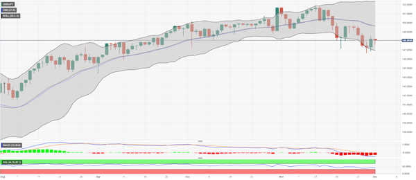 技术分析:美元/日元可能在隔夜波动高点附近(148.00 左右)面临一些阻力