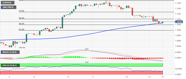 从技术角度来看,欧元/美元货币对在 4 小时图表上的 100 周期简单移动平均线 (SMA) 附近找到了一些支撑。紧随其后的是 1.1000 中间,代表从月度波动低点反弹的 50% 斐波那契回撤位,如果果断突破该水平,将为进一步下跌铺平道路。现货价格可能会加速滑向 1.1000 心理关口,即斐波那契 61.8%等级。