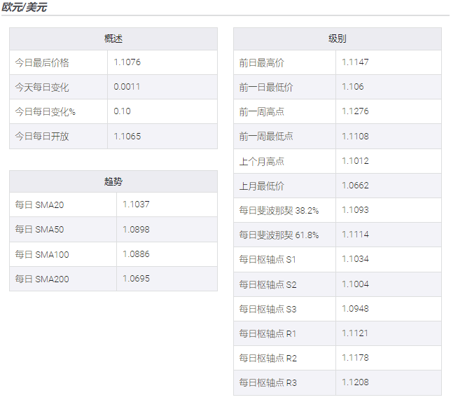 欧元/美元在周二亚洲时段小幅走高,目前似乎已经结束了连续五天的下跌,并阻止了自本周早些时候触及的 2022 年 2 月以来最高水平的修正下滑。然而,现货价格缺乏看涨信心,目前交投于 1.1070-1.1075 区域附近,当日涨幅不到 0.10%。