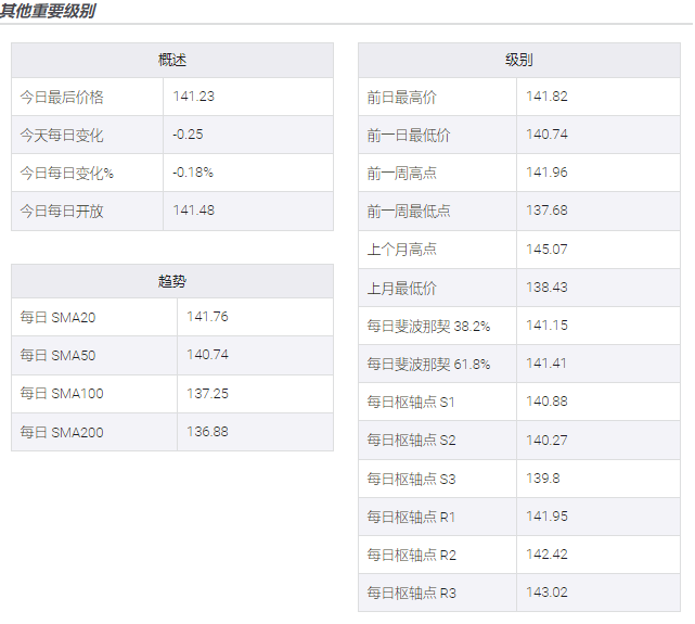 然而,围绕 141.00 整数的两个月水平支撑区域限制了日元汇率的直接下行。