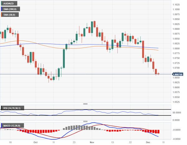 盘中,澳元/纽元受到从 1.0700 关口下降的 50 小时简单移动平均线 (SMA) 的限制,200 小时移动平均线向下突破 1.0760,澳元/纽元在年初遭遇拒绝。