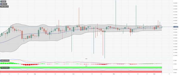 第一个上行障碍将出现在交易区间的上限 83.40 处。另一个值得关注的上行因素是今年迄今 (YTD) 高点 83.47。再往北,下一个障碍是心理整数关口 84.00。