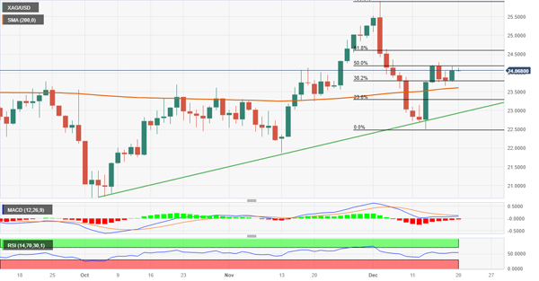 白银价格分析:XAG/USD 稳定在 24.00 美元上方,多头等待突破 50% 斐波那契回调