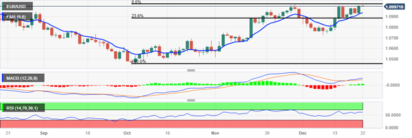 另一方面,欧元/美元货币对可能在 1.0950 的主要水平找到支撑,随后是 1.0938 的 7 天指数移动平均线 (EMA)。