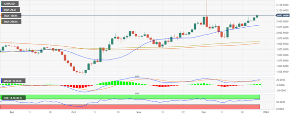Martín指出,从更广泛的角度来看,金价在20日简单移动平均线(SMA)、100日SMA和200日SMA上方的位置证实买家在整体趋势中的主导地位。高于这些均线水平通常表明市场环境看涨。