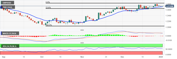 英镑/美元有望结束连续两天的跌势,周二亚洲时段小幅走高至 1.2730 附近。英镑/美元汇率受到英国央行 (BoE) 的鹰派立场以及对美联储 (Fed) 对 2024 年第一季度利率轨迹的鸽派立场的猜测的支撑。