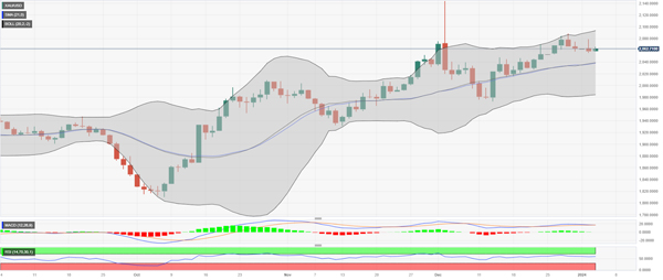 隔夜低点位于 2,055 美元区域附近,现在似乎保护了 2,040 美元水平区域之前的直接下行空间。令人信服地跌破后者可能会使金价变得脆弱,加速跌向 2,020 美元中间支撑位,并通往 50 日简单移动平均线 (SMA),目前接近 2,008-2,007 美元区域和 2,000 美元心理关口。一些后续抛售将暴露 1,960 美元的汇合点,包括 100 日和 200 日移动平均线。