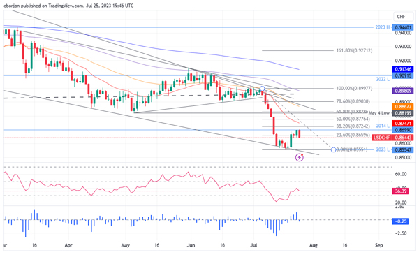 美元/瑞郎价格分析:在面临 0.8700 关口后回落至两天低点