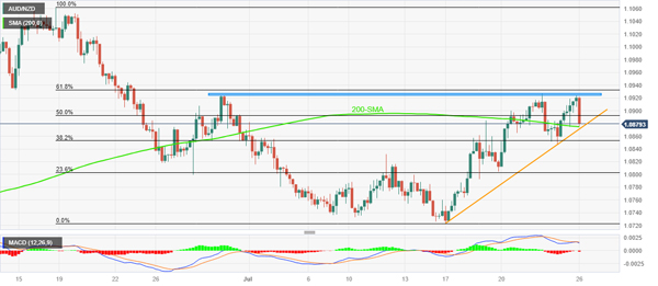 然而,200 移动平均线和一周上升支撑线分别位于 1.0875 和 1.0870 附近,刺激澳元/纽元空头。此后,不排除快速跌向1.0800整数关口的可能性。