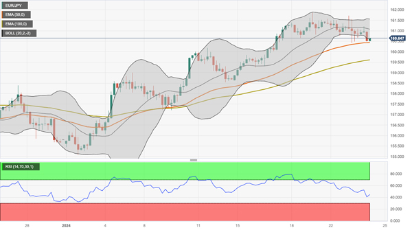 欧元/日元的第一个上行障碍将出现在布林带上边界161.56。若果断突破后者,将在 1 月 23 日触及周高点 161.70。下一个障碍是 1 月 19 日的高点 161.87。