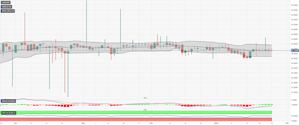 美元/印度卢比的第一个上行障碍位于 83.40(交易区间的上限)。下一个障碍将出现在 83.47(2023 年高点)和 84.00(整数)。另一方面,初步支撑位在83.00心理关口。下一个竞争水平位于82.80(交易区间下限,1月15日低点)和82.60(8月11日低点)。