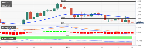 欧元/美元价格分析:跌幅扩大至1.0830附近,随后触及月度低点