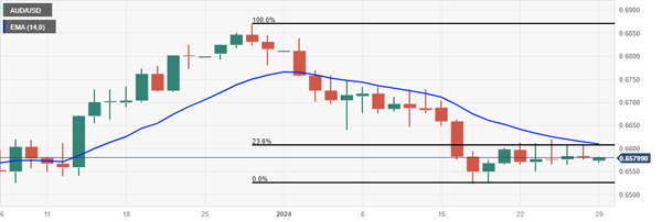 联邦公开市场委员会 (FOMC) 定于 1 月 31 日星期三发表声明,一致预期委员会将联邦基金利率维持在 5.25-5.50% 不变。然而,市场对3月份降息的偏见可能会给美元带来下行压力。此外,周二的房价指数和消费者信心数据将受到密切关注,以获得进一步的市场洞察。