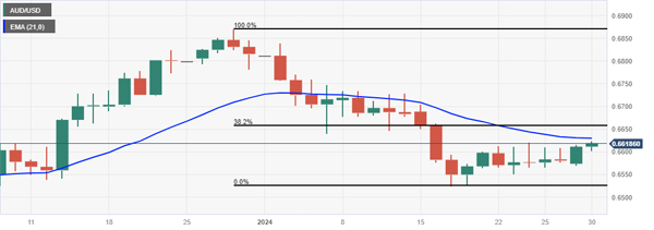 在美元(USD)稳定的情况下,澳元(AUD)周二继续上涨。由于前一交易日美国债券收益率下降,澳元/美元货币对获得上行支撑,这一趋势归因于美国资产负债表更加健康。自2023年10月以来,收益率下降有助于美国国债的可持续性,而更强劲的经济增长导致税收收入改善。美国财政部近日宣布,第一季度计划借债7600亿美元,低于此前10月份预估的8160亿美元。