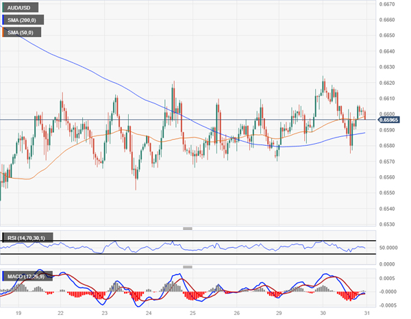 澳元/美元继续挂在 0.6600 关口,盘中价格走势在主要价格水平上循环,近期动能受到 200 小时简单移动平均线 (SMA) 上升至 0.6590 的看涨倾斜的支撑。