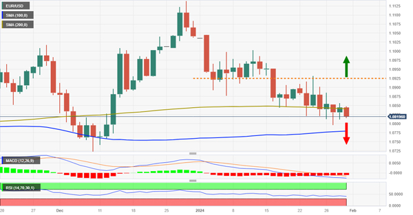 欧元/美元在周三亚洲时段遇到新的供应,并在最后一小时跌至1.0815区域,距离本周早些时候触及的12月13日以来的最低水平很近。