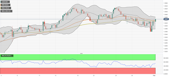 布林带的上边界 1.3460 将是该货币对的直接阻力位。任何高于 1.3461 的后续买盘都将反弹至 1.3500 心理整数位。再往北,下一个阻力位是 1 月 25 日的高点 1.3535。